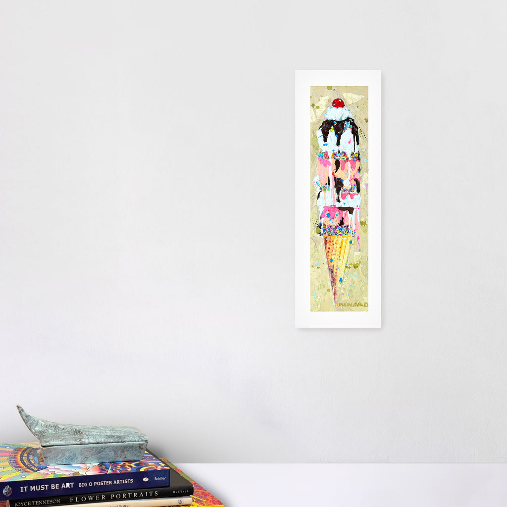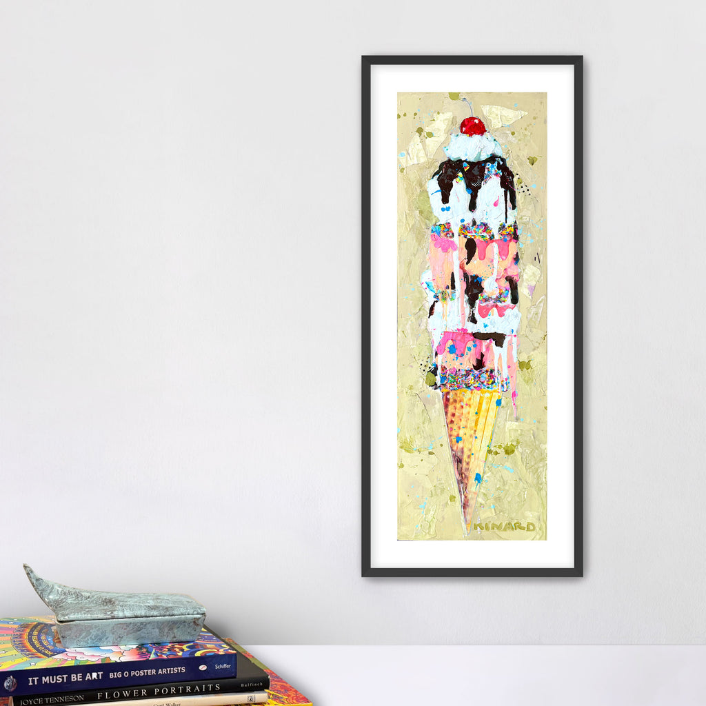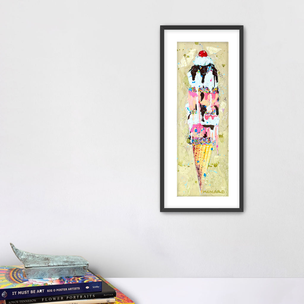 A sweet symphony of color - gold, pinks, creams, and chocolate tones that remind me of summer days and melting ice cream cones. This piece is all about balance: playful yet sophisticated, nostalgic yet modern.