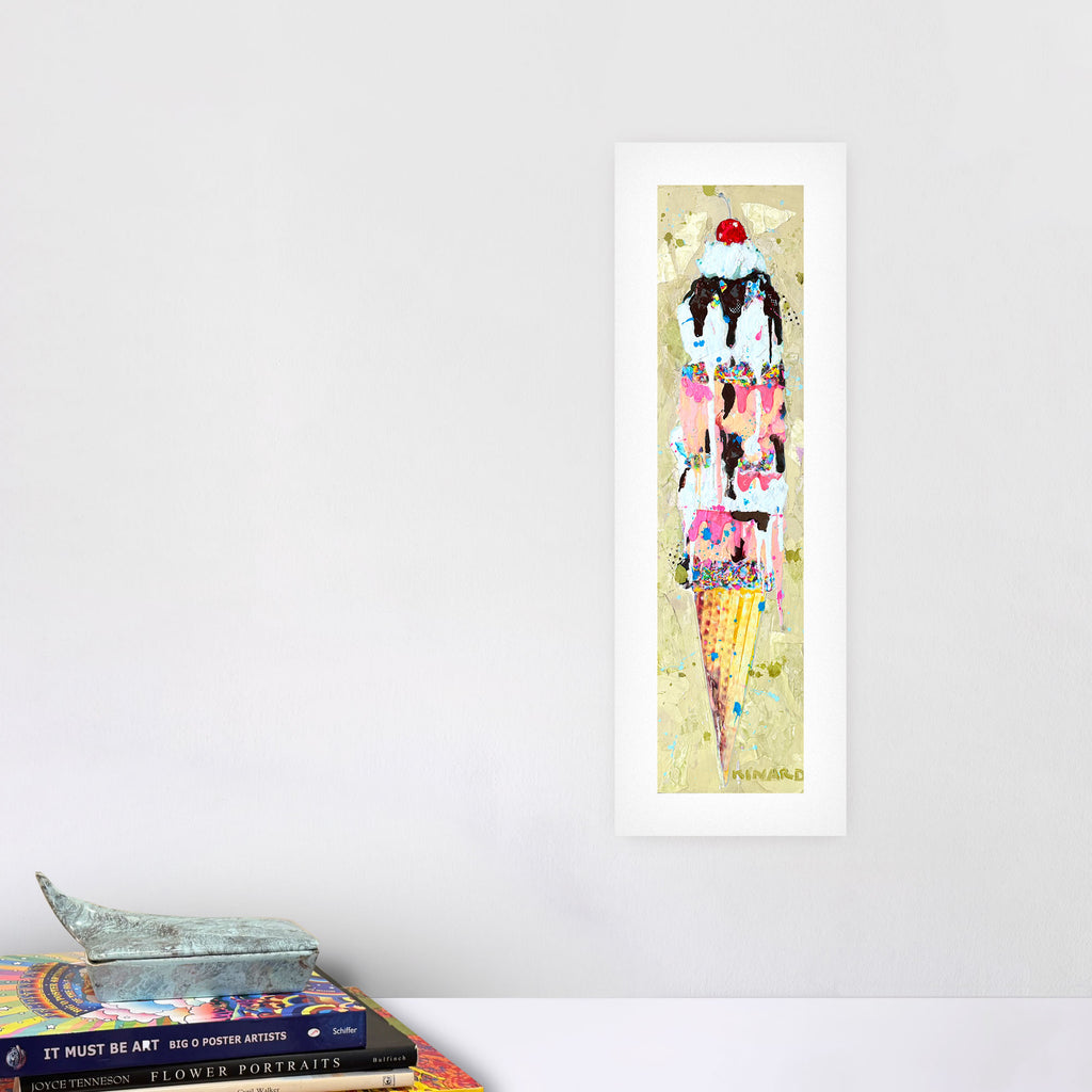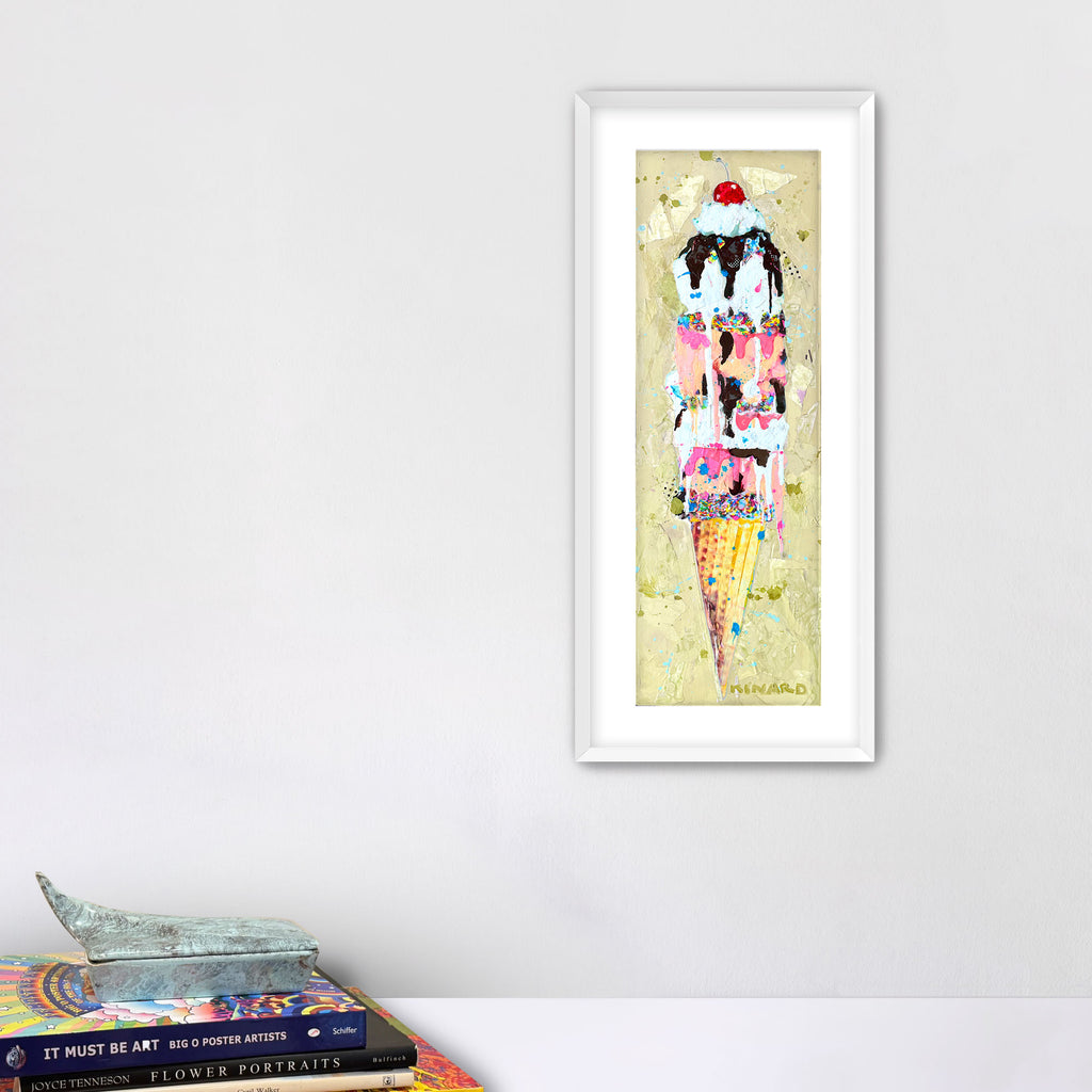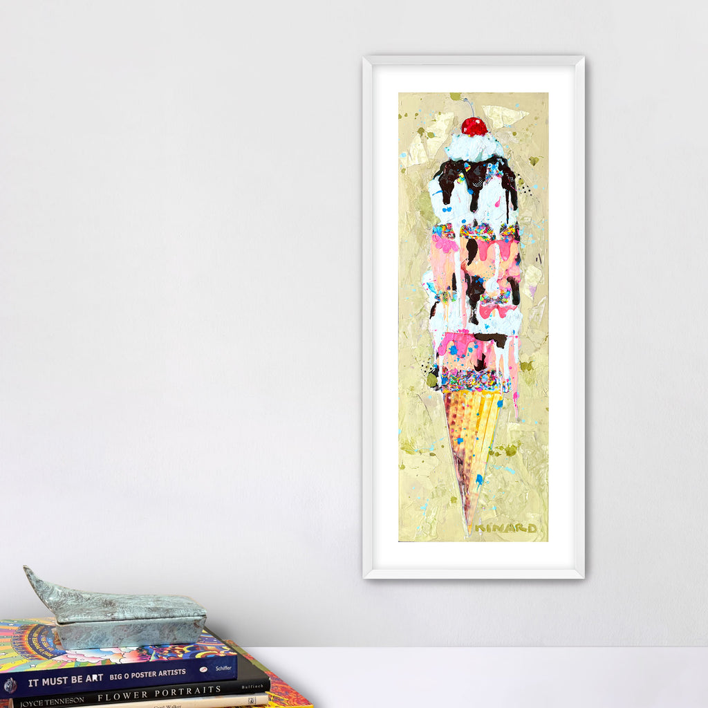 A sweet symphony of color - gold, pinks, creams, and chocolate tones that remind me of summer days and melting ice cream cones. This piece is all about balance: playful yet sophisticated, nostalgic yet modern.